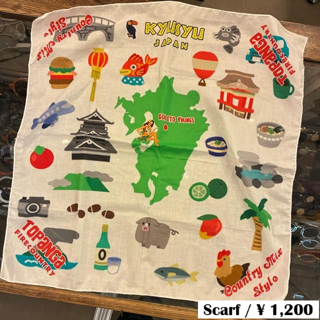 including Kumamoto Castle, hot springs, Sasebo burgers, black pork, and kabosu . The center features a BON ETO Vikings pin, making it a fun souvenir. It's recommended for use as an accent around your neck or bag , or as a lunchbox wrapper. You can also unwrap it and use it as a cute lunch mat. It's also recommended as a wall decoration. It makes a great gift or small thank-you gift. Maintenance: Washable in water . We recommend placing it in a net and using the hand wash cycle.