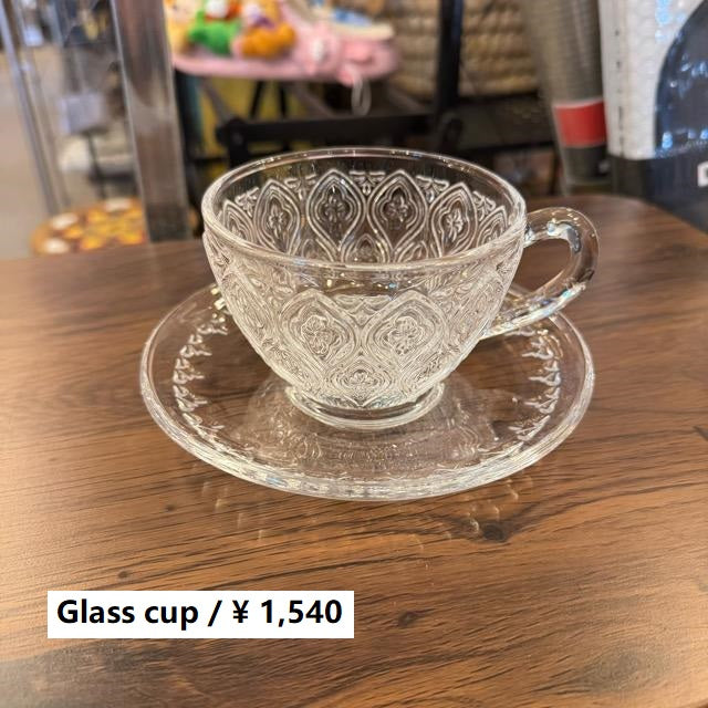 海外のアンティークショップで出逢ったかのような、ガラスのカップ&ソーサー。